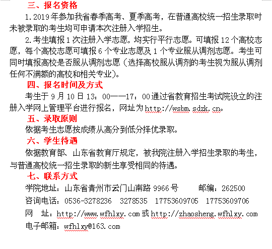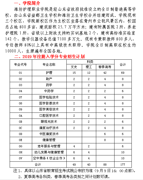 潍坊护理职业学院2019年注册入学招生简章
