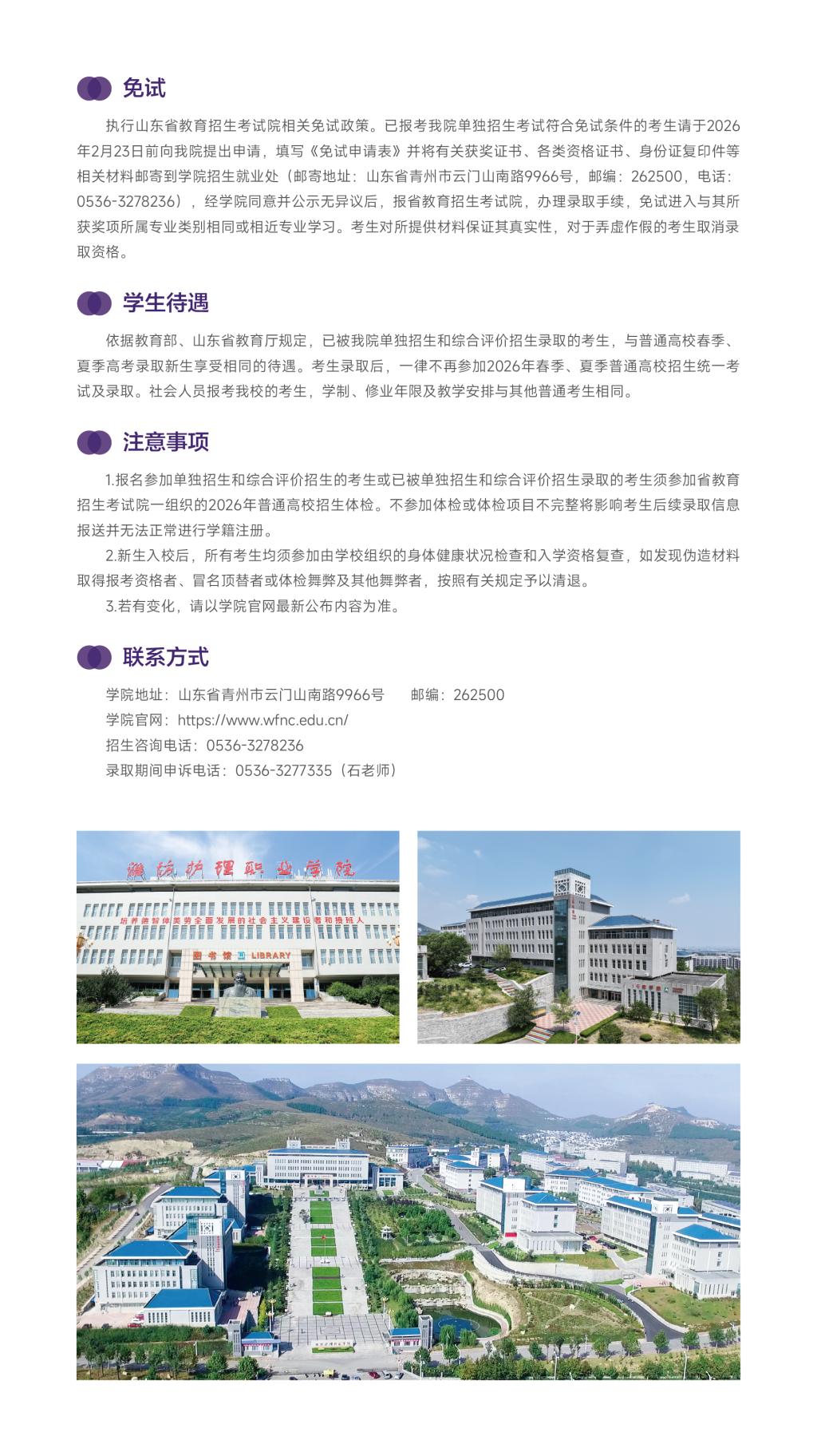 潍坊护理职业学院2026年单独招生和综合评价招生简章