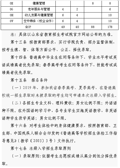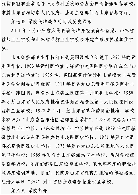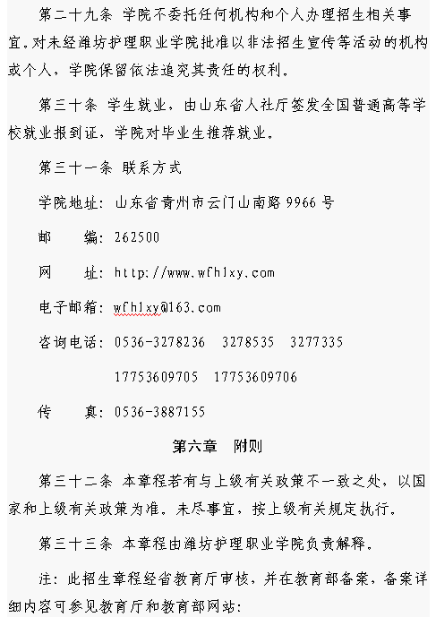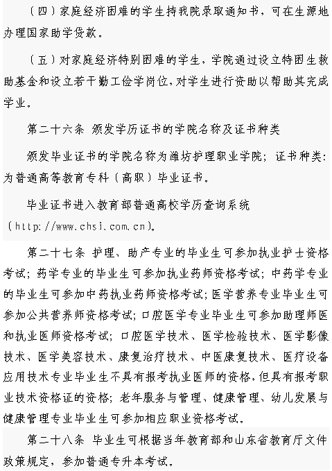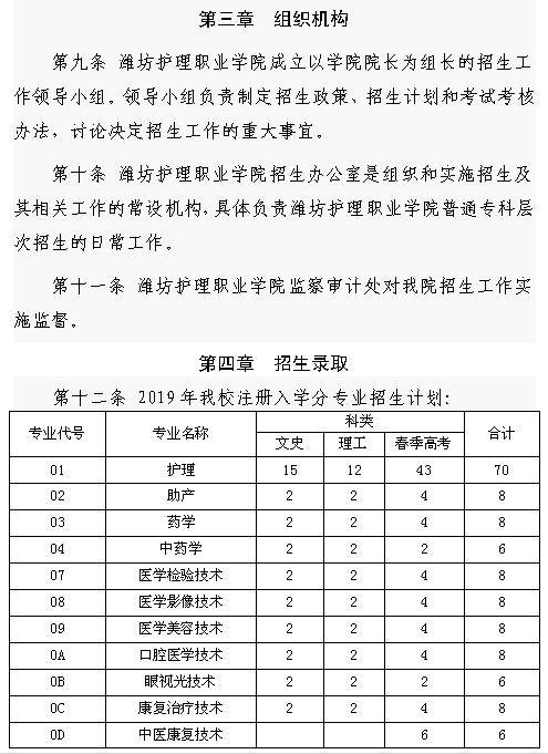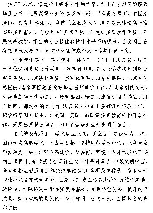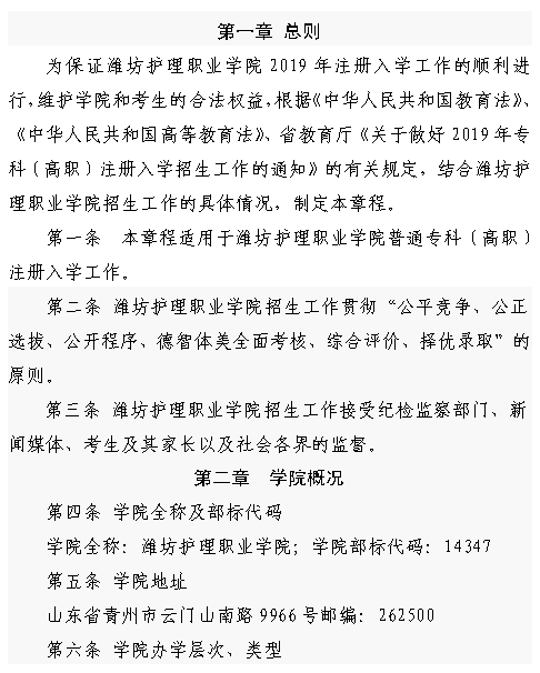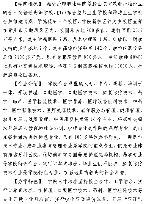 潍坊护理职业学院2019年注册入学招生章程