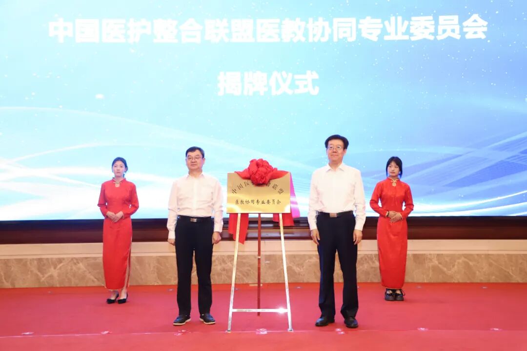 在全体与会嘉宾的见证下,崔照忠与山东大学公共卫生学院二级教授、博士生导师、中国农村卫生协会副会长、山东省基层卫生协会会长李士雪共同为中国医护整合联盟医教协同专业委员会揭牌。