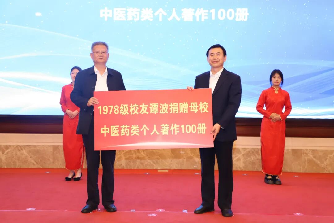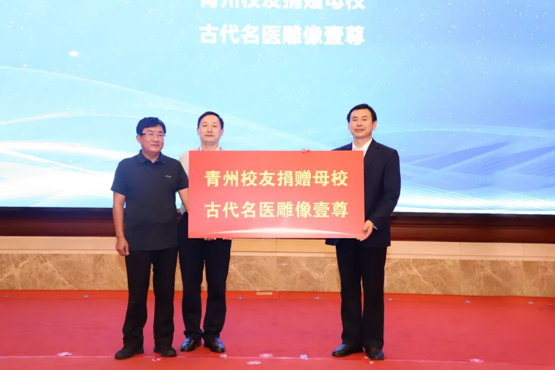 在捐赠仪式上,学院1978级校友,全国基层名老中医专家、临朐县中医院原党委书记谭波,向母校捐赠了自己多年来的中医药著述;校友郝生、秦晓林代表青州籍校友向母校捐赠古代名医雕像,学院党委委员、副院长窦忠伟接受捐赠。
